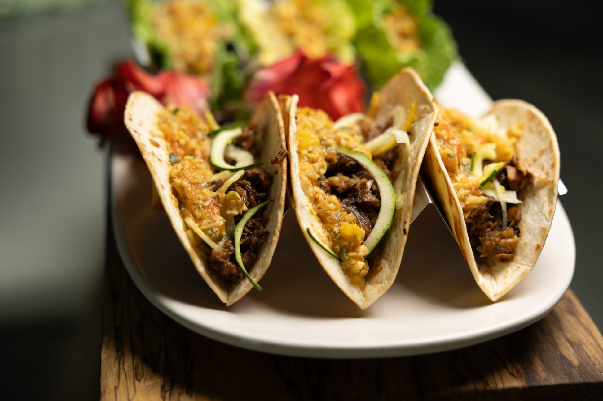 A drizzle of cool coconut-lime crema, and fresh herbs for balance. Served on warm corn tortillas, these tacos are the perfect mix of fire and freshness — satisfying, vibrant, and 100% vegan.